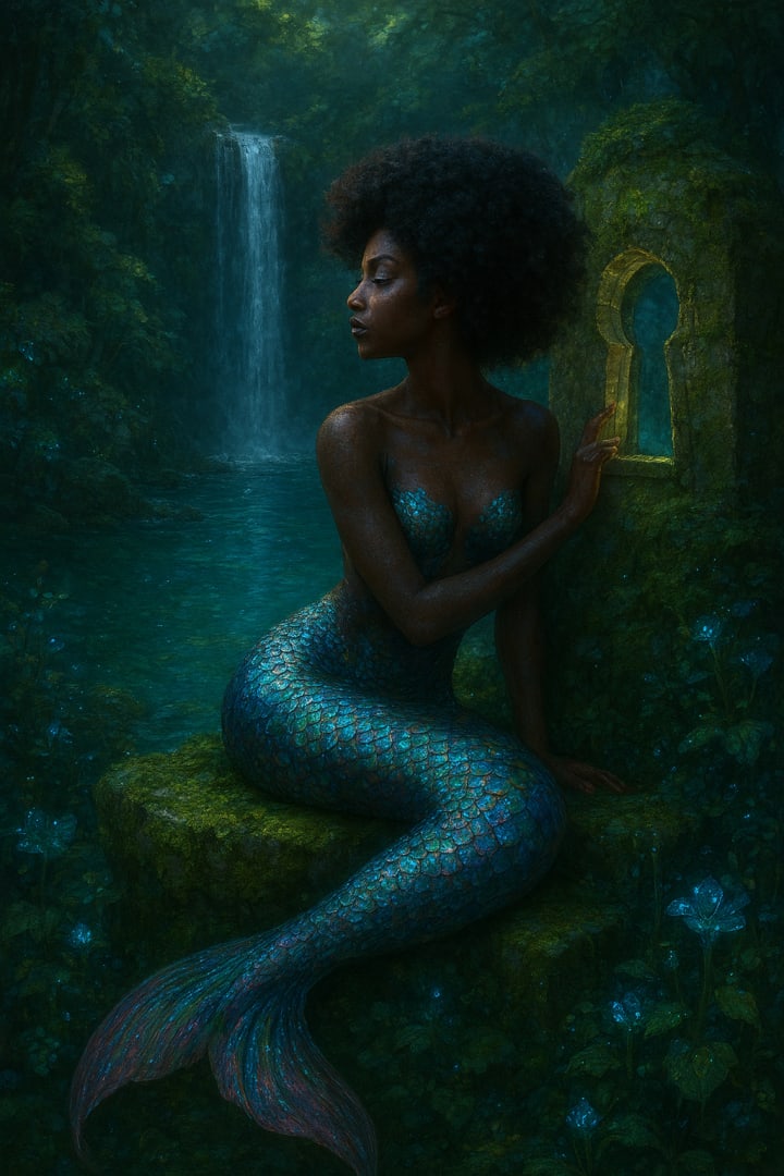 The moss beneath her tail pulsed faintly, as if sensing her longing. The keyhole leaned in with a faint shift of its light, hardly visible to the eyes. The door had never opened before. Not for her mother, nor her grandmother, nor any of the sea-born who came before. But tonight, it pulsed with possibility.