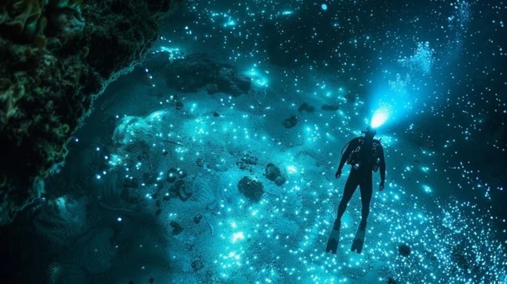 Hunt Glowing Waves and Starlit Underwater Fireworks